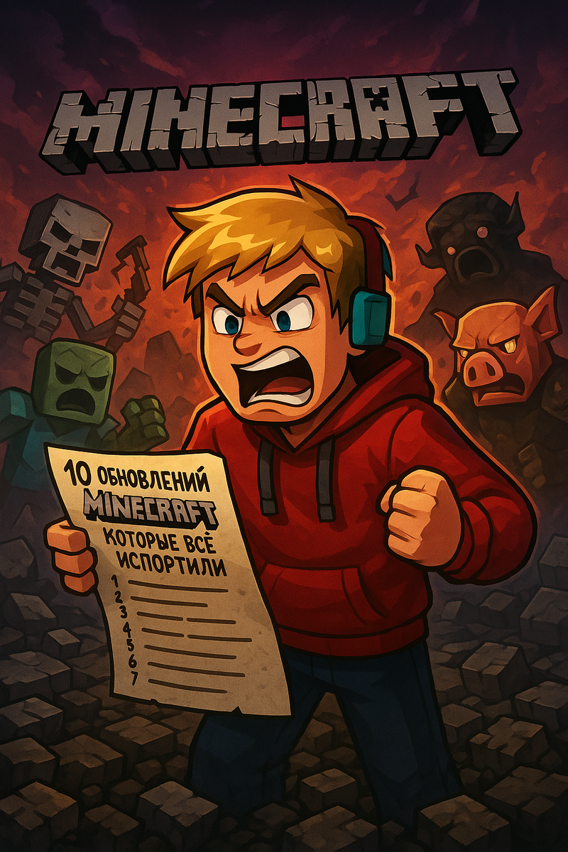 (Мнения игроков разделились… а некоторые ушли навсегда) Minecraft — это легенда. Но даже легенды ошибаются. За долгие годы игра прошла путь от пиксельного выживания до сложнейшей песочницы. Но не все обновления были встречены с восторгом… Сегодня мы собрали 10 обновлений Minecraft, которые, по мнению игроков, всё испортили. Или почти всё. Многие помнят времена, когда можно было спамить кликом и побеждать. Но после обновления 1.9 боевая система изменилась — добавили задержку между ударами, новые механики щитов и топоров. PvP-сообщество негодовало. Серверы даже стали откатываться на 1.8, чтобы сохранить "олдскул". Да, это шутка от Mojang, но она стала символом конца легенды. В каждом обновлении писали: "Removed Herobrine", и когда игроки поняли, что его действительно нет… многим стало грустно. Да, это красивейшее обновление. Но для слабых ПК — настоящее проклятие. Гигантские биомы, высокая генерация, прорисовка — всё это вызывало лаги, особенно на серверах. Появились рейды, столы проф