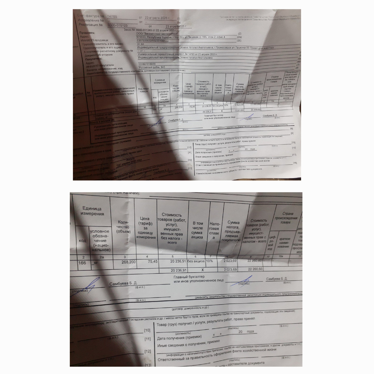 Мясное вчера нам привезли. Оно вышло на 22260р. 268кг.