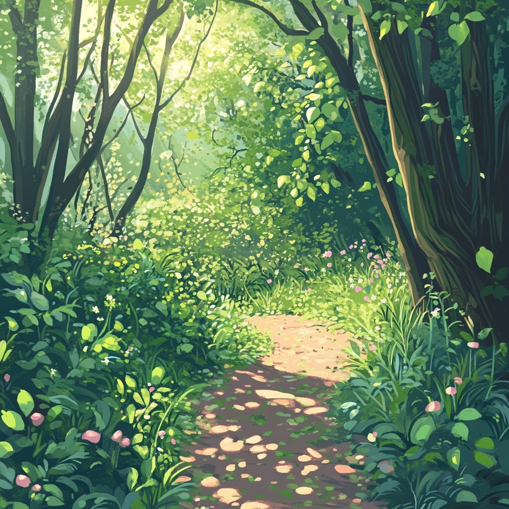 Создано на основе запроса: large scale illustration of a lush, old growth forest path. A variety of bright, happy greens, chartreuse, pinks on a sunny day, light filtering through the canopy of trees, pollen glowing in the light. Simple fine lines, soft bright lighting, surreal scale --- Автоперевод: Крупная иллюстрация пышного, старого лесного пути. Отлично выглядит? 🤔 https://dzen.ru/id/65c0c65c86e4f837c27b24d7 #ИИ #AI #нейросеть #midjourney #art