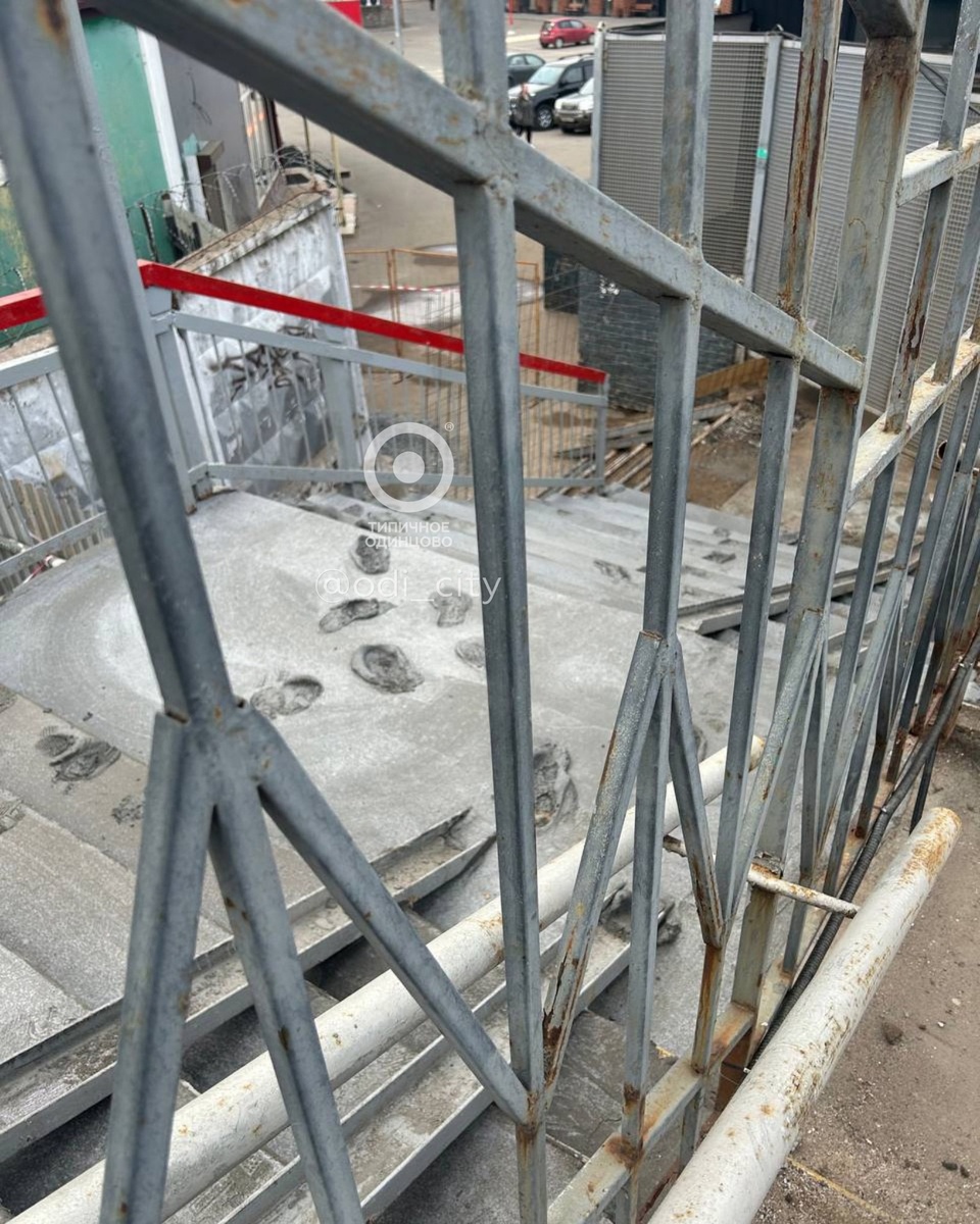 Кому-то не понравилась идея, что «старый» мост на станции Одинцово закрыт и нужно идти в обход, поэтому было решено действовать и идти напролом по свежему цементу. Теперь следы этого чудака навсегда с нами ✊🏼