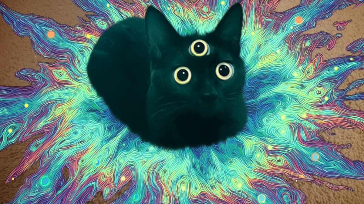 Создано на основе запроса: 3-eyed cat, animecore fractalpunk
