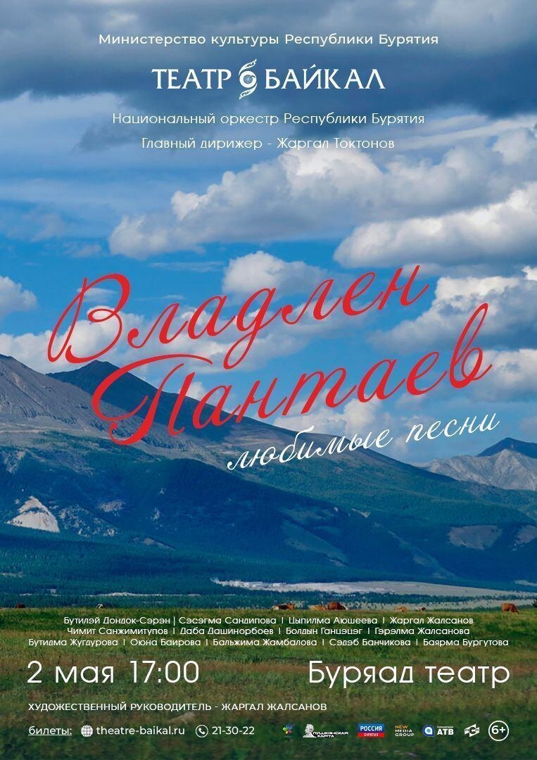 Театр «Байкал» представляет: «Владлен Пантаев. Любимые песни» Концерт, посвященный творчеству композитора, состоится 2 мая в 18:30 в Буряад театре Владлен Пантаев – автор более 200 песен на стихи тридцати поэтов и писателей, а также музыки к тридцати спектаклям. Его проникновенные мелодии стали неотъемлемой частью репертуара театра «Байкал» и полюбились слушателям разных поколений. В программе концерта прозвучат самые известные и любимые произведения композитора в исполнении солистов и Национального оркестра Бурятии. Зрителей ждет вечер, наполненный ностальгией, радостью и искренними эмоциями. Приобрести билеты на концерт можно онлайн по ссылке: https://quicktickets.ru/ulan-ude-teatr-baikal/s553 или в кассе театра по адресу: ул. Ербанова, 11, оф. 540. Действует «Пушкинская карта». Телефон кассы: 21-30-22 Возрастное ограничение 6+.