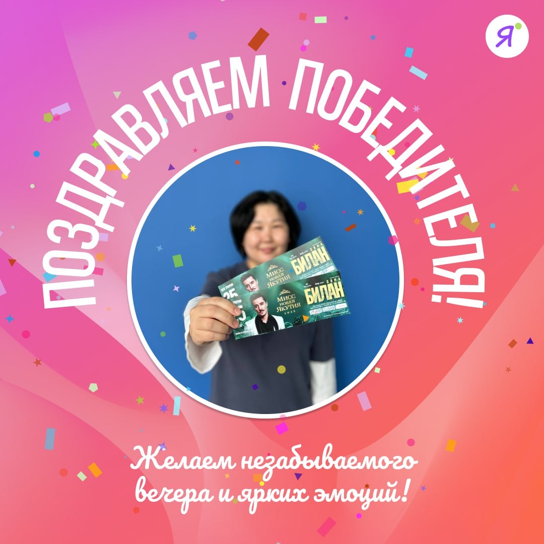 В ответ на пост 🤩 Поздравляем с победой в розыгрыше билетов на концерт Димы Билана🤩 Победитель нашего розыгрыша уже держит в руках заветные билеты на концерт Димы Билана. Уже завтра популярный артист выступит на гранд-финале "Мисс Новая Якутия" с полноценным шоу. Мы от всей души желаем читательнице канала ОЯ, чтобы этот вечер стал особенным. Пусть любимые песни согреют душу, а в памяти останутся самые тёплые и искренние эмоции. Спасибо, что вы с нами 🤩 @kmakne поделитесь своими впечатлениями после концерта 🤩 Online Якутия | Подписаться