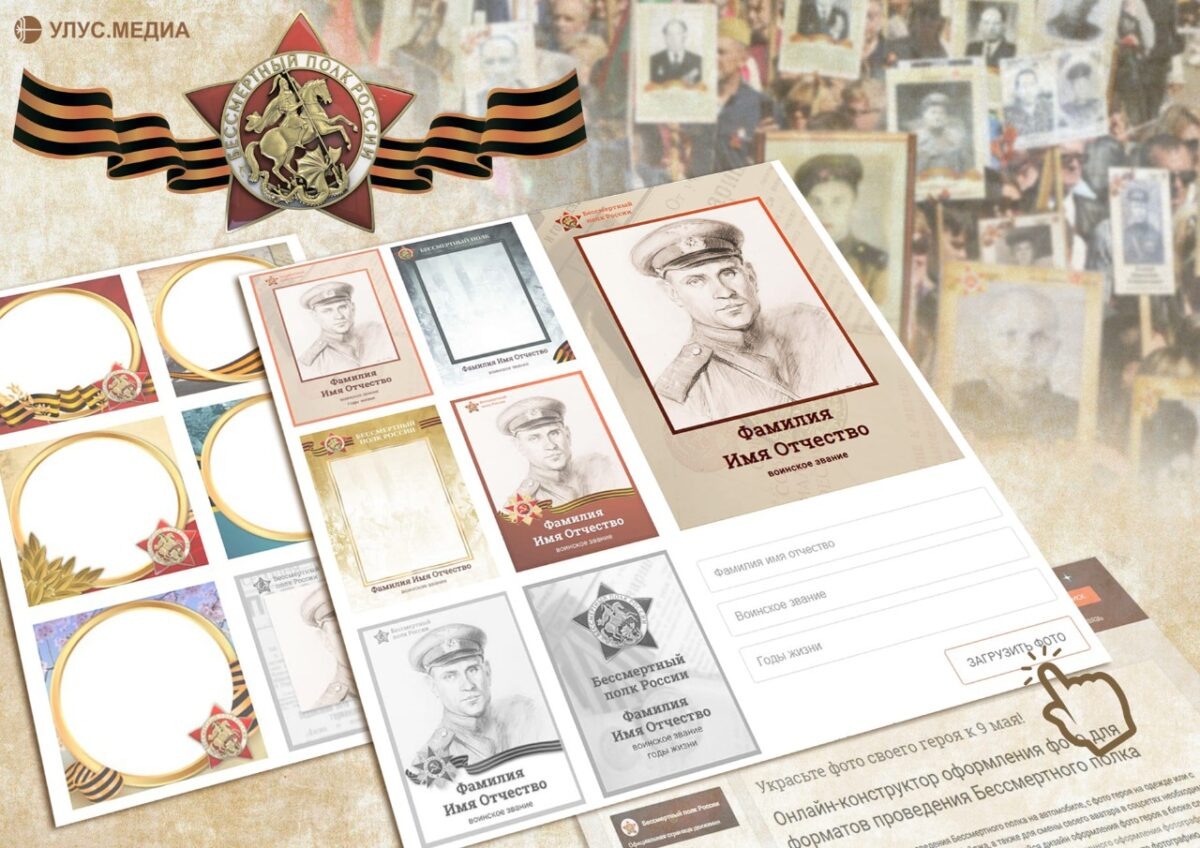 В 2025 году шествие акции «Бессмертный полк» пройдет в очном формате. Каждый желающий может присоединиться, чтобы почтить память героев Великой Отечественной войны. Для участия необходимо подготовить портрет ветерана — сделать это можно бесплатно и быстро с помощью онлайн-конструктора. Сетевое издание «Улус.Медиа» подготовило для вас пошаговую инструкцию по созданию памятного портрета. Обратите внимание: в целях безопасности в этом году размер фотографии не должен превышать формат А4. Как создать портрет героя через официальный онлайн-конструктор 1. Перейдите на сайт акции «Бессмертный полк» Откройте страницу с онлайн-конструктором по ссылке https://www.polkrf.ru/shtender 2. Выберите дизайн Слева на экране выберите понравившийся шаблон оформления. Сервис предлагает праздничные рамки для портретов, подходящие для шествия, аватарок, одежды или автомобильного оформления. 3. Загрузите фотографию Поддерживаются форматы: .jpg, .jpeg, .gif, .png. Фото можно вписать в рамку или масштабировать