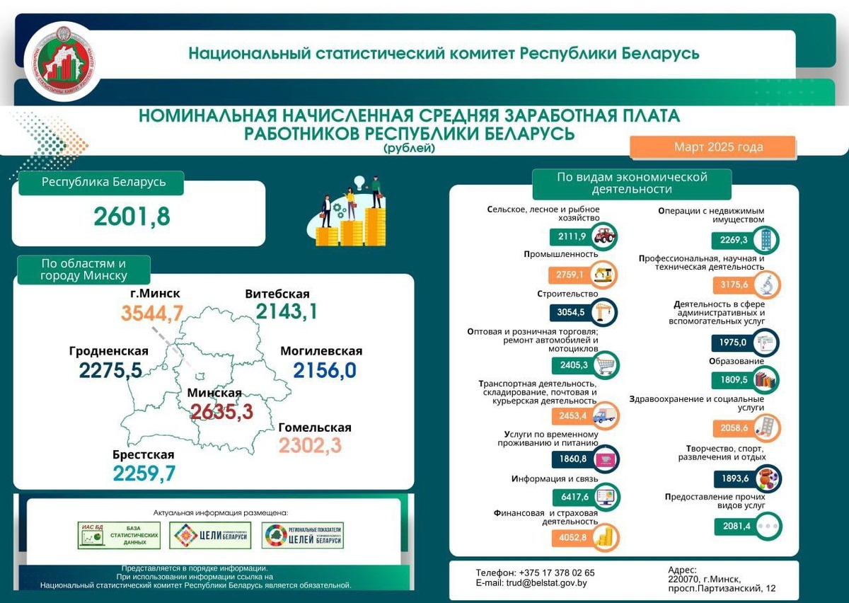 📌 Национальный статистический комитет Беларуси представил данные о средней зарплате в нашей стране за март ⬆️