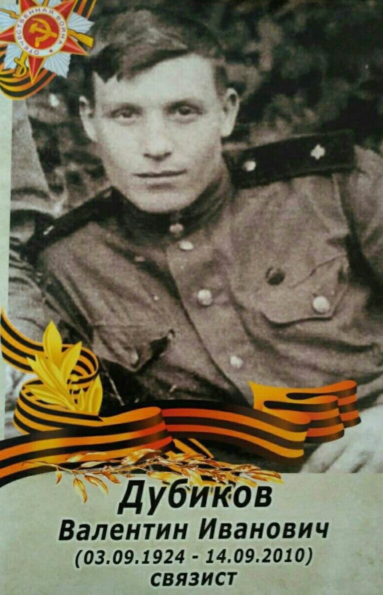 Уже при одном упоминании о войне на глазах ветерана, участника боевых действий Валентина Ивановича ДУБИКОВА, навёртываются слёзы. Видно нелегки воспоминания о пройденных фронтовых дорогах, о погибших товарищах. По малолетству Дубикова не призвали в Красную Армию в первые месяцы войны. Его черед пришел значительно позднее, когда наши войска погнали фашистов на запад.