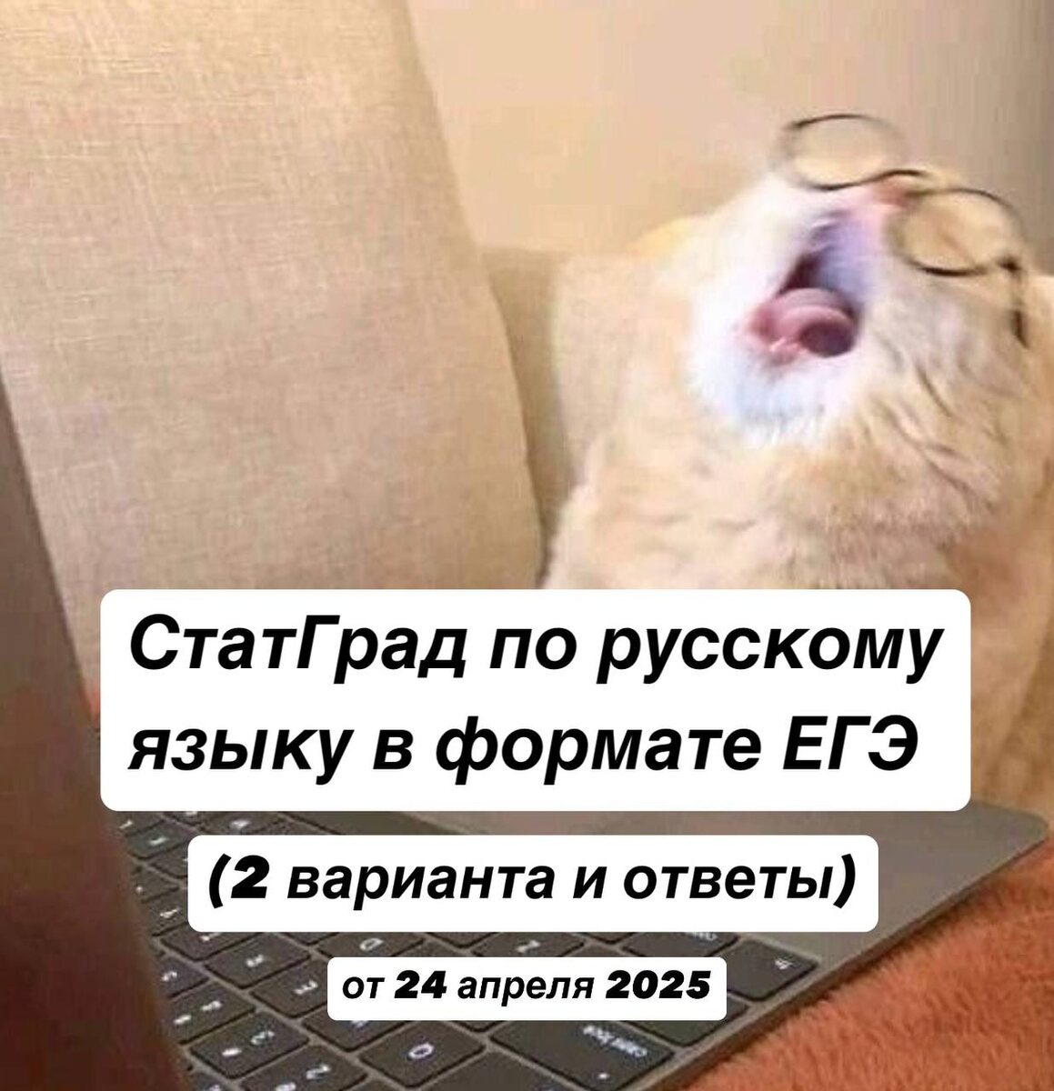 Файл с двумя вариантами СтатГрада ЕГЭ по русскому языку (от 24 апреля 2025 года) и ответами на них вы можете скачать, нажав на синий текст или перейдя по ссылке. Ссылку прикрепляю ниже.