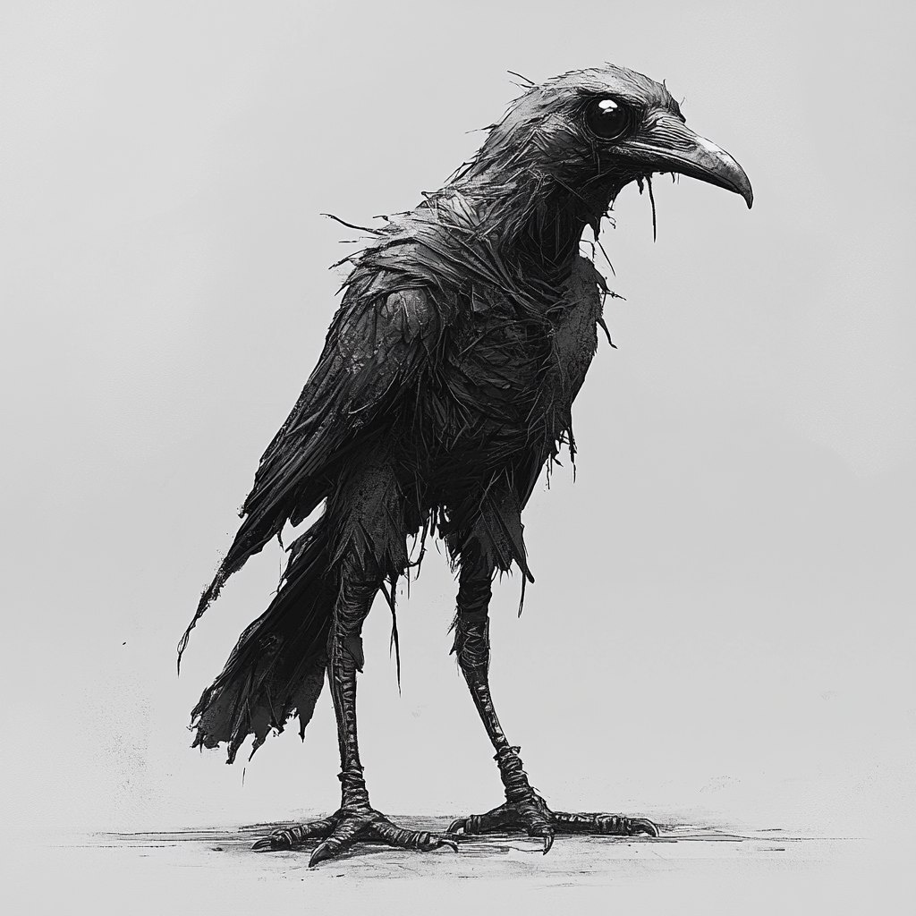 Создано на основе запроса: tattoo design of a full body crow standing with open beak in a trashy style --- Автоперевод: татуировка дизайна полного кузова, стоящая с открытым клювом в дрянном стиле Отлично получилось? 🤔 https://dzen.ru/id/65c0c65c86e4f837c27b24d7 #ИИ #AI #нейросеть #midjourney #art