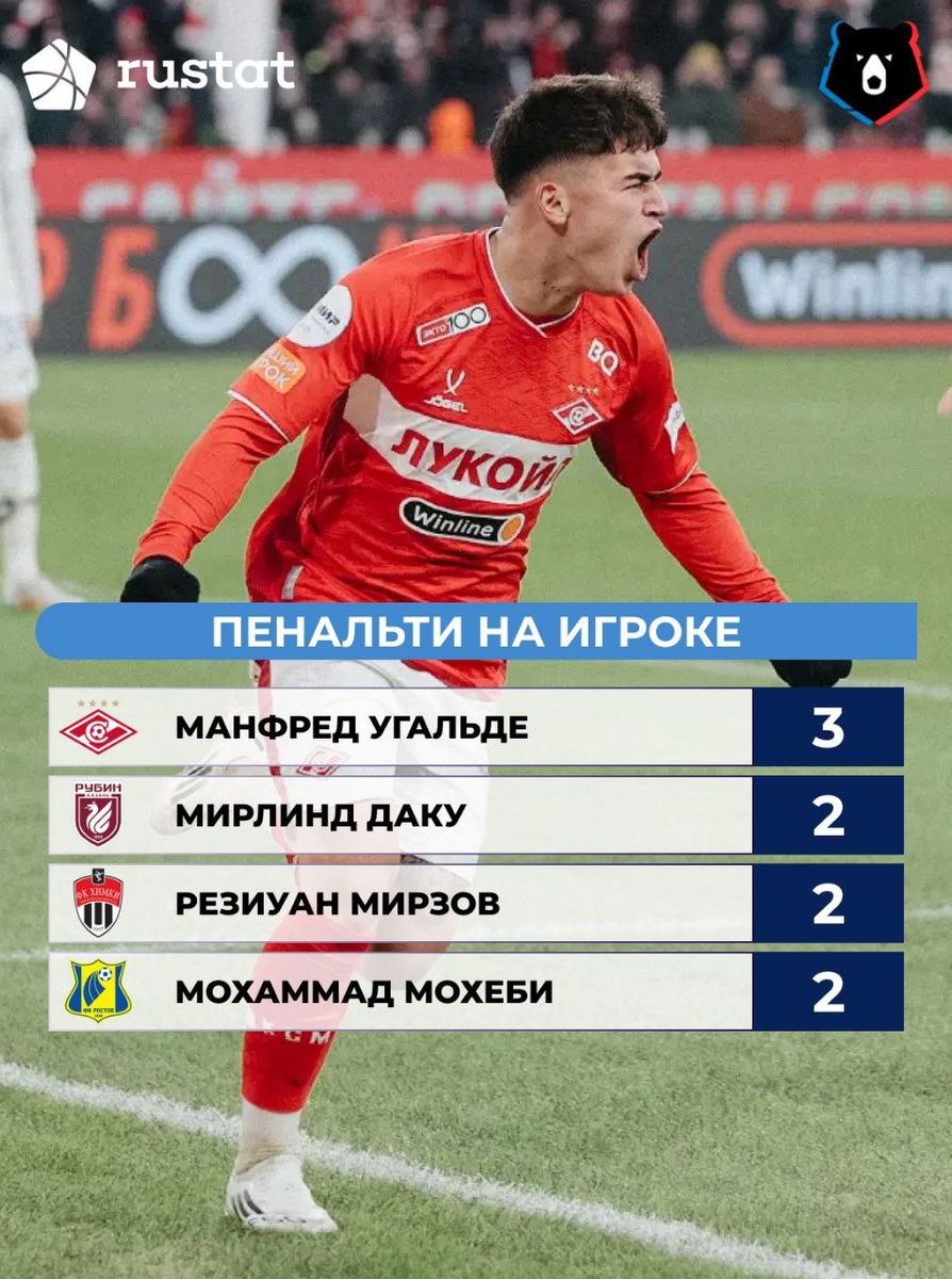 Нападающий «Спартака» Манфред Угальде лидирует в нынешнем сезоне Российской Премьер-Лиги по заработанным на себе пенальти. Так, костариканский форвард заработал для красно-белых три одиннадцатиметровых удара, сообщает телеграм-канал РУСТАТ.