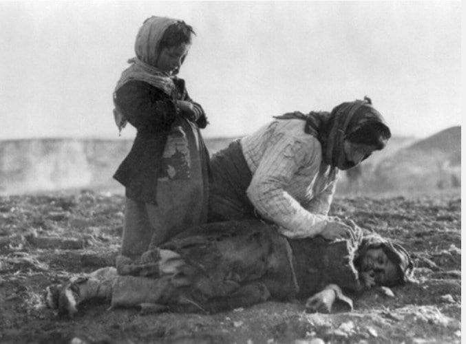 #геноцид 24 апреля очередная скорбная дата - начало геноцида армян в Османской империи. Одной из форм уничтожения был конвоируемый переход через пустыню, где многие погибли от голода и обезвоживания. Женщина с детьми в 1915 году в сирийской пустыне