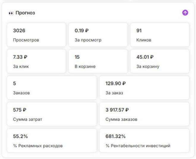 🔖 Вы видите, сколько покупателей и сколько денег принесёт кампания при текущем бюджете и ставке.