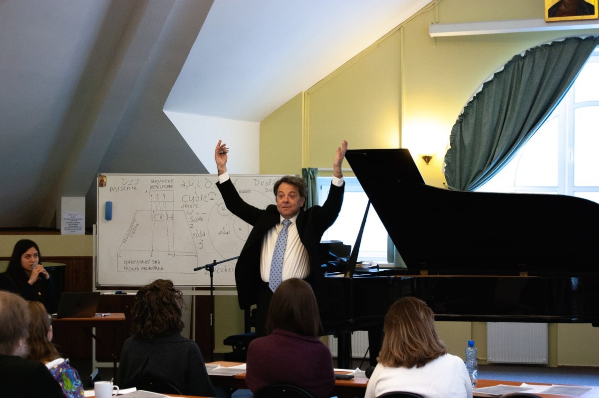 Итальянская опера: история, традиции и интерпретация 🎶 Недавно в ПСТГУ прошла незабываемая встреча с выдающимся итальянским дирижером, пианистом и музыковедом Джованни Форназьери. Маэстро рассказал преподавателям и студентам Факультета церковного пения об исполнительских традициях итальянской оперы: союз слова, образов и музыки, зависимость работы режиссера и дирижера от авторских указаний, особенности итальянской фонетики и ее влияние на эмоциональную окраску вокальных партий... На примере опер Джузеппе Верди «Набукко», «Риголетто» и «Травиата» участники встречи проследили нюансы исполнительской трактовки. 🤌 Рассказ сопровождался яркими иллюстрациями на фортепиано – маэстро совершенно покорил слушателей своим артистизмом, итальянским темпераментом и обаянием! Подписаться на ПСТГУ 👨🏫 Задать вопрос #УМР_ПСТГУ #ФЦП_ПСТГУ