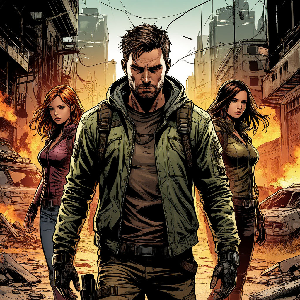 В мире, где цивилизация рухнула, а природа вновь заявила о своих правах, жил мальчик по имени Максим. Он рос в небольшом поселении, окружённом густыми лесами и рекой, полной рыбы. Максим любил рыбалку больше всего на свете. Он часами мог сидеть на берегу, наблюдая за поплавком и слушая шум воды. Еще одной его страстью была мототехника. В разрушенном мире автомобили и мотоциклы стали редкостью, но Максим умел чинить их, используя подручные средства. Его руки словно помнили, как собирать и разбирать механизмы, и это умение делало его незаменимым в поселении. Но самой большой радостью для Максима была его подруга Соня. Они росли вместе, и между ними была нерушимая связь. Соня была смелой и решительной, всегда поддерживала Максима в его начинаниях и разделяла его увлечения. Они были неразлучны, и казалось, что ничто не сможет разрушить их дружбу. Однажды в поселение пришла новая жительница — Дарья. Она была старой знакомой Максима, его первой любовью, с которой они расстались ещё до катас