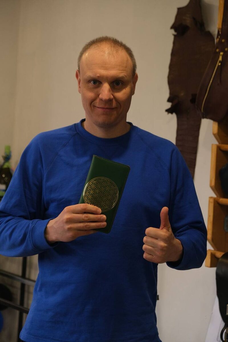 В один прекрасный момент, у меня возникло активное желание сделать, себе Кошелёк. Я очень быстро нашёл, как оказалось после, супер Кожных дел Мастера. И начался наш путь, длиной почти в месяц. Результат на фотках. Реализовали все мои хотелки. Благодарю всех ( Любимую Наташку и Кожника Анатолия ) за участие и реализацию моего намерения, в этот супер результат.