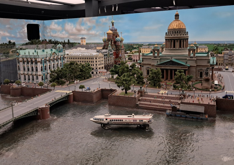 В 2021 году недалеко от станции метро ВДНХ открылся музей «Царь-Макет», и мне после посещений петербургского «Гранд-Макета» и «Макета Москвы» на ВДНХ было любопытно побывать и здесь. Здесь пока представлена только европейская часть России, но масштабы проведенной работы по созданию макета поражают. Объекты здесь представлены в масштабе 1:87, это узнаваемые места и города нашей страны. Работа очень кропотливая — в дома можно заглянуть, а над созданием и росписями псковского храма например работали два года. Здесь нет географической точности, но рассматривать объекты очень интересно — здесь множество интересных мелочей, увидеть которые можно только внимательно изучая экспонаты. Тут и Малевич, и Ван Гог с подсолнухами. Для макета созданы сто тысяч крошечных жителей, их можно увидеть на стадионе или на Нашествии Здесь меняются день (он длится 11 минут) и ночь (её продолжительность 4 минуты). Можно увидеть салют или традиционные московские пробки. Объекты представлены в разных плоскостях, т