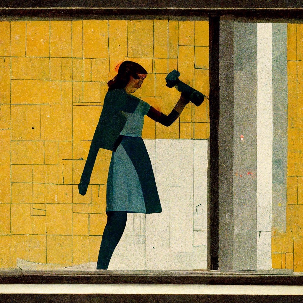 Создано на основе запроса: Young woman with a mechanical arm punching a hole in a building, distant, 2d --- Автоперевод: Молодая женщина с механической рукой, пробивая дыру в здании, далеком, 2 -й Необычно получилось? 🤔 https://dzen.ru/id/65c0c65c86e4f837c27b24d7 #ИИ #AI #нейросеть #midjourney #art