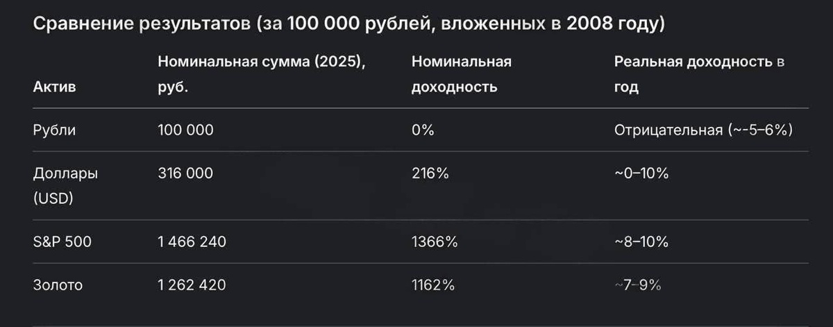 📉За 17 лет 100 тысяч рублей обесценились до 40 тысяч с учётом инфляции — рубль терял по 5–6% покупательной способности в год с 2008-го