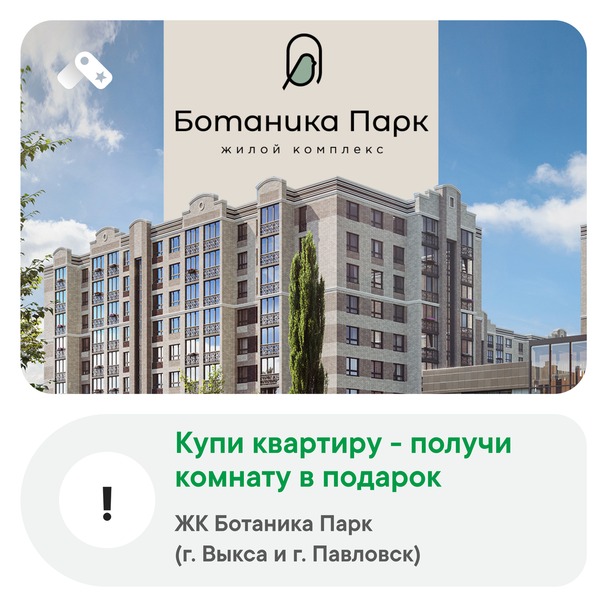 С 1 по 30 апреля у каждого покупателя квартиры в ЖК «Ботаника Парк» есть шанс абсолютно бесплатно получить «Комнату в подарок»! Как это работает? Если вы покупаете однокомнатную квартиру — есть возможность бесплатно заменить её на двухкомнатную. Если выбираете двушку — станете владельцем трёхкомнатной! А если решитесь на трёхкомнатную - то она может стать четырёхкомнатной! Шансы выиграть высокие! Разыгрывается сразу три квартиры, а количество сделок не исчисляется сотнями в месяц. Значит, что вероятность выиграть значительно выше, чем в стандартных розыгрышах от застройщиков! Не упустите свой шанс! Предложение действует по Ботанике в гор. Выкса и Ботаника Парк 3 дом в Павловске