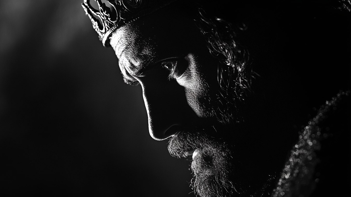 Создано на основе запроса: King David wearing a crown, close up, silhouette, dark, high contrast
