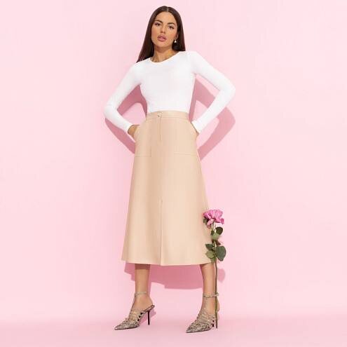 Юбка из экокожи с карманами - 1290Р Размеры 44-55 СМОТРЕТЬ НА САЙТЕ