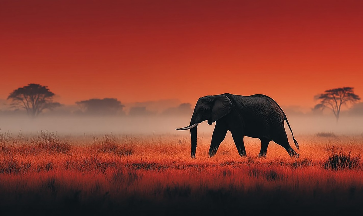 Создано на основе запроса: elephant silhouette, savannah at dawn background, portrait photography inspired by da vinci , high resolution