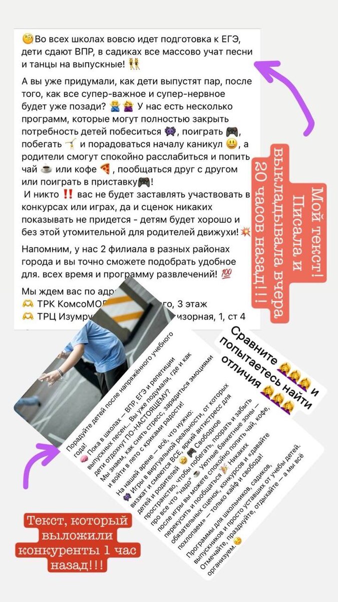 Удивительное сегодня утро было… заходишь в вк и случайно в ленте видишь текст от конкурентов, который практически слово в слово повторяет