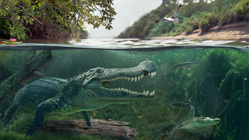 Более 75 миллионов лет назад в обширных тучных болотах Северной Америки мелового периода рыскала гигантская рептилия, которая, вероятно, питалась крупными динозаврами и достигала огромных размеров — возможно, до 12 метров в длину. Долгое время Deinosuchus, что означает «ужасный крокодил», считался близким родственником современных аллигаторов. Однако теперь палеонтологи полностью пересмотрели эволюционную историю этого хищника. Обновленное генеалогическое древо дейнозуха и его родственников опубликовано в журнале Communications Biology. Новые данные указывают, что доисторическое пресмыкающееся было немного меньше и могло переносить соленую воду, что, возможно, позволяло ему пересекать древний морской путь, охватывавший большую часть древней Северной Америки. Исследование также установило, что гигантские виды, подобные дейнозуху, появлялись по всему миру чаще, чем считалось. «Похоже, что гигантские крокодилы в определенные периоды были скорее нормой, чем исключением. Гигантские крокодил