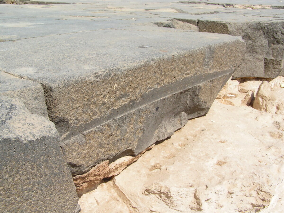 В Египте, на плато Гиза и в местах добычи гранита в Асуане, есть множество странных следов обработки камня. Пропилы, следы выемки породы неизвестным инструментом. Все они объясняются египтологами просто: делали руками, медными пилами с применением абразива. Вот несколько примеров. Следы пиления на базальтовом полу у пирамиды Хеопса: