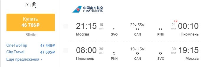 ✈️Москва - Пномпень (Камбоджа), безвизовая пересадка в Гуанчжоу, туда и обратно, с багажом за 46700 рублей 19 мая - 30 мая - https://checkintime.ru/mkae 🏖 Поиск туров | ✈️Авиабилеты
