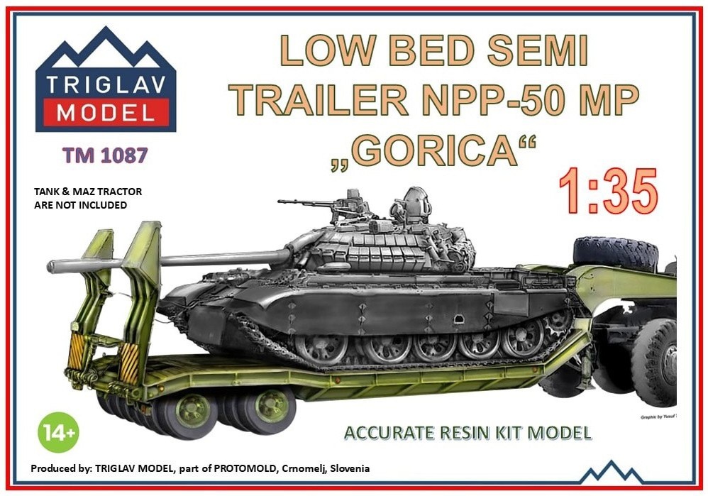 TRIGLAV MODEL из Словении выпустила на 3D-принтере модель югославского танковозного трейлера NPP-50MР "Gorica" в масштабе 1/35: Low bed semi trailer NPP-50 MР "Gorica" (каталожный номер ТМ1087)