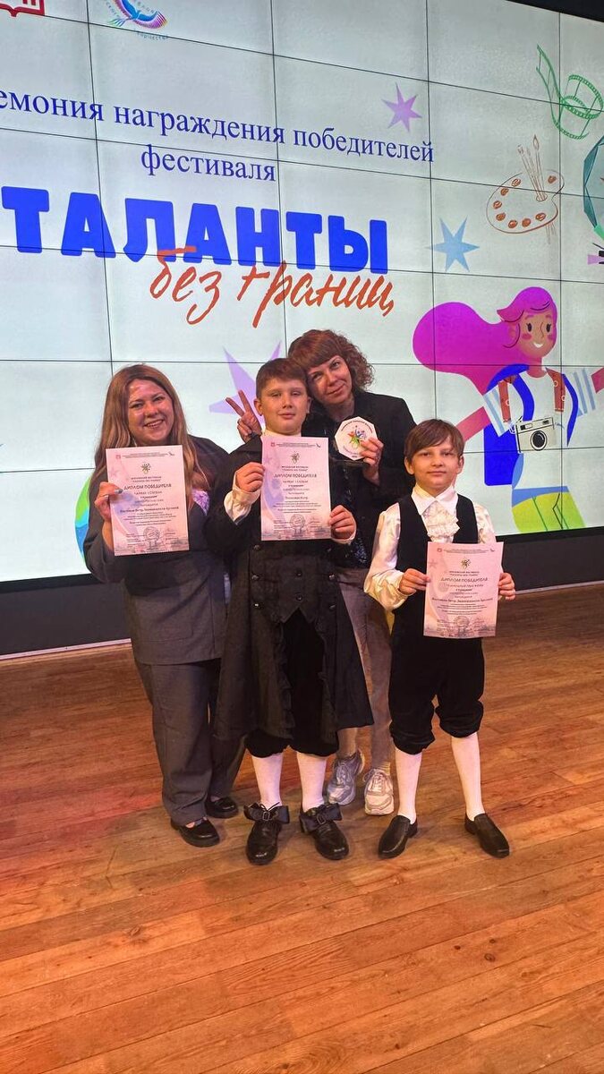 🏆 Двойная победа на фестивале «Таланты без границ» Наши талантливые ребята, Петр П. и Арсений З. покорили жюри на фестивале «Таланты без границ». 🥇 Ребята стали дважды лауреатами 1 степени, а также получили специальный приз среди сотен участников. 👩🏫 Этот невероятный успех стал возможен благодаря кропотливой работе и творческому подходу наших потрясающих педагогов с образовательной площадки «Теорема» — Бариковой Натальи Степановны и Кривогиной Инэсы Николаевны. ❤️ Их профессионализм, индивидуальный подход и безграничная вера в учеников помогли раскрыть и развить детские таланты. 🎉 Поздравляем ребят и их наставников с победой и желаем дальнейших ярких достижений. #школа338 #ТиНАО #ДОНМ #24апреля #талантыбезграниц