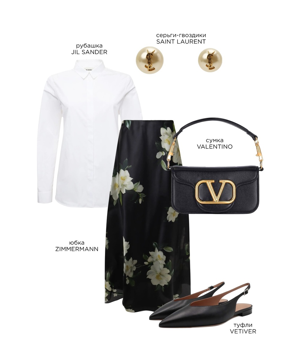 Как носить: Акцентная юбка с цветами + белая рубашка и мюли. Или струящееся платье с «пыльным» цветочным рисунком — поверх него можно набросить тонкий трикотажный джемпер. Такая романтика легко сочетается с кроссовками или сандалиями на грубой подошве — чтобы не быть «слишком девочкой».