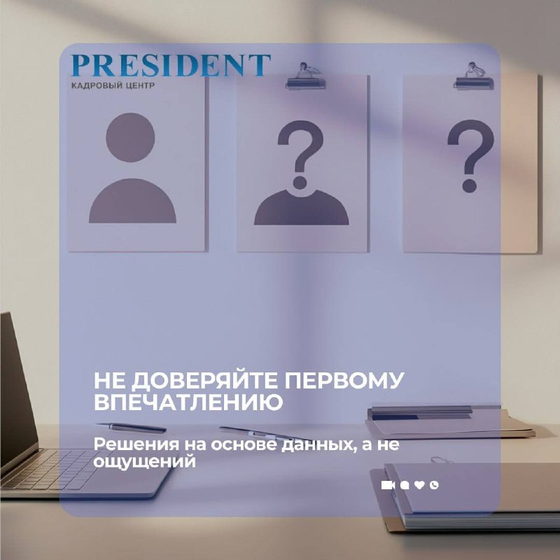 Советы работодателю: Почему нельзя судить по первому впечатлению на собеседовании Первое впечатление — это быстро. Но в подборе персонала скорость восприятия часто мешает объективности. Кандидат может показаться неуверенным — но быть сильным аналитиком, которому нужно время на адаптацию. Или наоборот — блестяще пройти собеседование, но не справиться с задачами уже в работе. Что мешает объективной оценке? ➖Эмоции: харизма или неловкость легко вводят в заблуждение. ➖Ожидания: вы «представляли» себе другого человека и уже сравниваете с ним. ➖Стереотипы: внешний вид, манера речи, образование — не всегда отражают компетенции. Как оценивать точнее? ☑️Используйте одинаковую структуру интервью для всех кандидатов ☑️Задавайте кейсовые и ситуационные вопросы ☑️Сравнивайте не впечатления, а реальные примеры работы и достижения ☑️Привлекайте к оценке нескольких интервьюеров В кадровом центре PRESIDENT мы регулярно помогаем работодателям увидеть сильные стороны кандидата там, где на первый вз