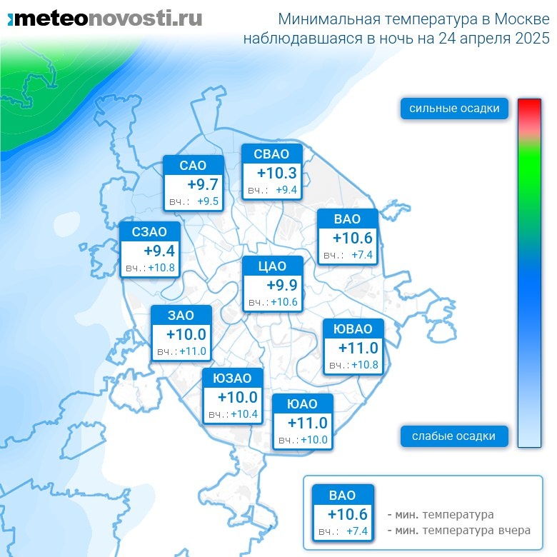 #за12часов #ночь Прошедшая ночь на 24 апреля была на 0.8°C теплее предыдущей