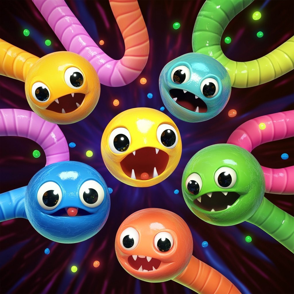 Создано на основе запроса: i need 5 snakes in a exciting game poster, each snake with different colors, Yellow, Blue, Green, Orange & pink