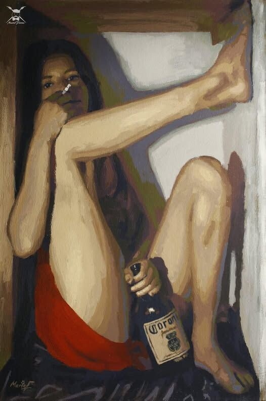 Зажатая четырьмя стенами, словно в клетке современного мира, она ищет утешение в своих пороках. Её поза говорит о желании свернуться калачиком, спрятаться от реальности. Взгляд безразличен, но возможно, внутри бьётся сердце, жаждущее свободы. На фоне огненно-красного заката она стоит, повернувшись к нам спиной. Она обнажила ноги и спрятала свои руки, создав образ противоречий. Листья кустарника пытаются скрыть её наготу, но она продолжает стоять, демонстрируя свою уверенность. На красном фоне её профиль выглядит особенно выразительно. Пучок волос – символ сдержанности и контроля над собой. Но что скрывается за этой строгой причёской? Может быть, бушующий океан эмоций, готовый выплеснуться наружу? Процесс раздевания как символ освобождения и обнажения истинной сущности. Этот момент – словно вдох перед прыжком в неизвестность. В отражении зеркала она поймала не себя, а кого-то неизвестного, кого она не смогла принять. Пистолет из пальцев – её внутренний протест. Рядом жужжит камера, сним