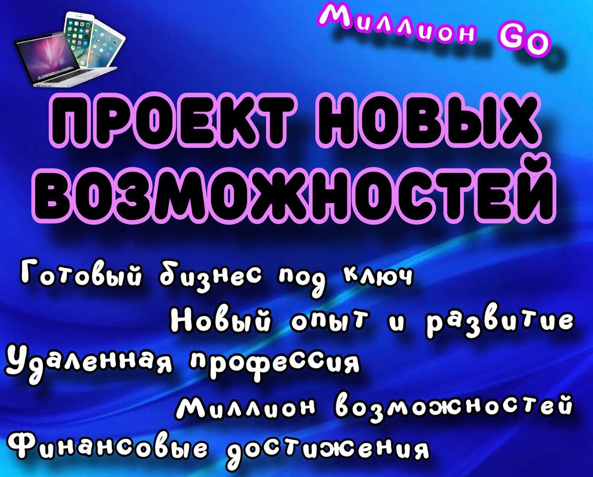 Здесь тебя ждут НОВЫЕ ВОЗМОЖНОСТИ 🍋Проект Миллион GO- это онлайн- проект, который включает в себя обучение по всем трендовым онлайн направлениям. Вам больше не надо скупать множество отдельных курсов. Вы все сможете найти в одном проекте. 🧑🎓 КАКИЕ ВОЗМОЖНОСТИ ЕСТЬ ДЛЯ ВАС 💻 Доступность обучения: В проекте очень адекватные цены на все курсы. Каждый может позволить себе разные направления, при этом не надо будет влазить в огромные рассрочки! 🆓 Свободный график обучения Проходить обучение Вы можете в любое, удобное для Вас время. Доступ к проекту БЕССРОЧНЫЙ ‼️ 🔝Трендовые направления онлайн-рынка Проект предлагает многочисленные направления инфо бизнеса. Вы можете выбрать как одно направление, так и несколько. Тем самым сможете увеличить свой доход. ✊ Сильная поддержка и мотивирующее окружение Чат- поддержки проекта и Ваш личный куратор всегда ответят на ваши вопросы А крутые отзывы других участниц проекта вдохновят на действия ↗️ Готовый бизнес под ключ. Вам не нужно б