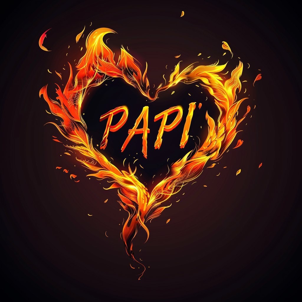 Создано на основе запроса: a heart shaped logo for a brand called "PAPI" with an fiery theme