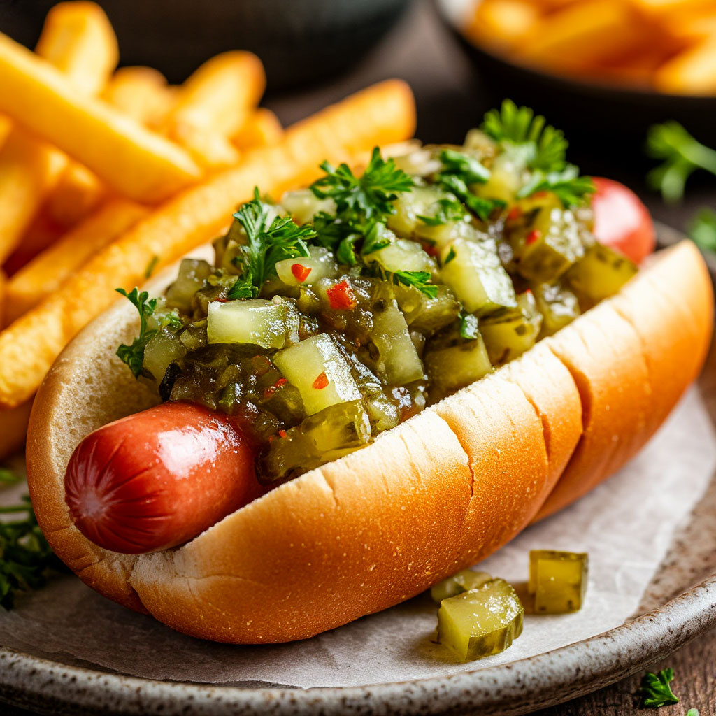Наши огурчики нарезаются мелкими кубиками и маринуются по особой технологии, сохраняя хрустящую текстуру и неповторимый вкус. Каждый кубик пропитан ароматной маринадной заливкой, которая делает закуску особенно пикантной и аппетитной. Соус Релиш от «Имбирь» – это: * Быстрая и вкусная закуска * Идеальный ингредиент для хот-догов и сэндвичей * Имеет насыщенный и интересный вкус Доступно на нашем сайте: