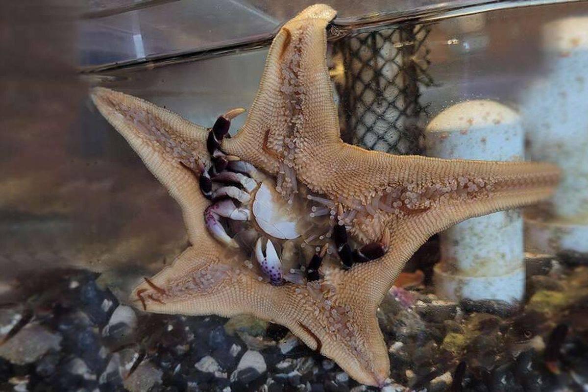 Она выбрасывает желудок наружу через рот, обволакивает добычу, переваривает её и втягивает обратно.