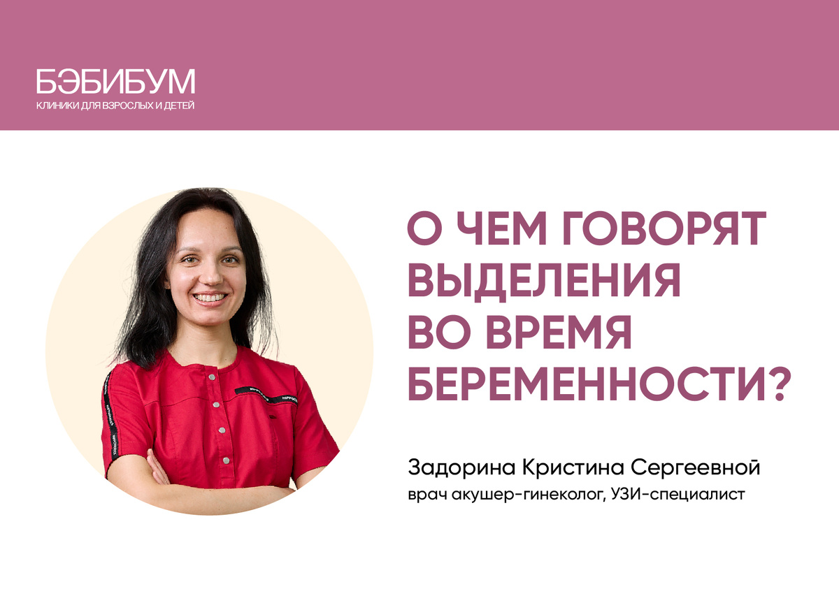 О выделениях во время беременности поговорим с врачом акушером-гинекологом клиники, узи-специалистом клиники Бэбибум Задориной Кристиной Сергеевной. Центр гинекологии и ведения беременности в Бэбибум - деликатная забота о женском здоровье Для того, чтобы начать говорить о патологических выделениях из влагалища, необходимо определиться с тем, что же такое нормальные выделения из влагалища. Характеристики нормальных выделений: слизистые или серозные (бели), без какого-либо запаха или с незначительным слабо кислым запахом. Они могут быть более обильными, чем в период до наступления беременности. Какие выделения во время беременности можно считать патологическими, потому их появление требует консультации врача: Данные признаки могут свидетельствовать о возникновении вагинита, бактериального вагиноза, наличии ЗППП. В любом случае о всех выделениях нужно сообщать своему врачу-гинекологу, чтобы уберечь себя от лишних переживаний или вовремя назначить необходимое лечение. Врачи клиники Бэбиб