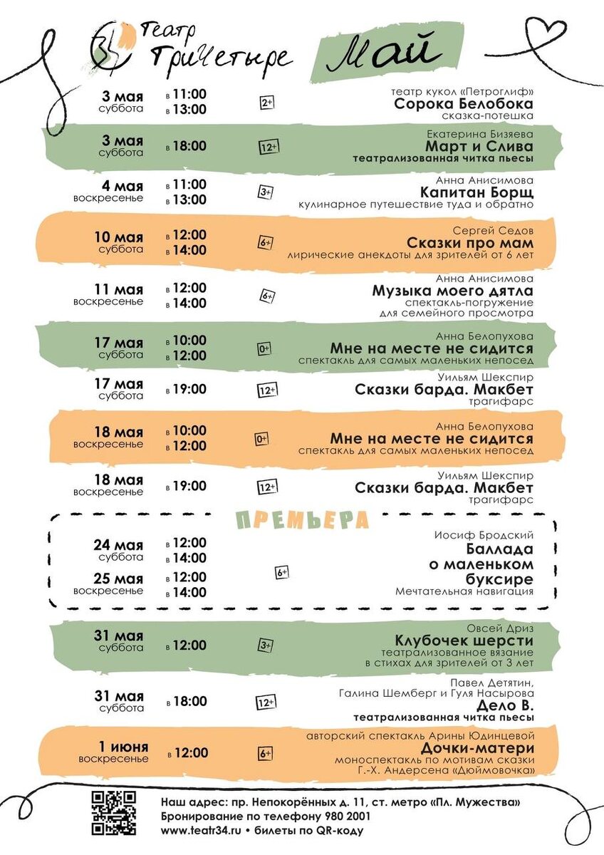 Афиша на 🌺🌺🌺! Вас ждут наши полюбившиеся зрителями спектакли, а ещё третья театрализованная читка и 🌺🌺🌺🌺🌺🌺🌺🌺! Будет интересно и весело! До встречи в театре "ТриЧетыре"! ❤️❤️ Билеты.