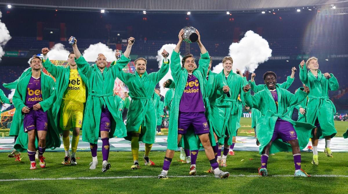 Традиции = маркетинг. На днях скромный ФК «Гоу Эхед Иглз» взял свой первый трофей за 92 года – Кубок Нидерландов. Многие (я тоже) не знали, почему команда празднует победу в зеленых халатах. Они на всех чемпионских фотках и видосах. Это давняя традиция Кубка, ставшая фишкой турнира. И она привлекла внимание спонсоров. Изначально банные халаты давали игрокам, чтобы они не простудилась. Но с 95-го халаты стали красных и белых цветов: титульным спонсором Кубка был пивной бренд Amstel. С этого сезона титульник новый – БК в зеленых цветах. Так халаты и перекрасились. celeba-sport.ru / Sport Community