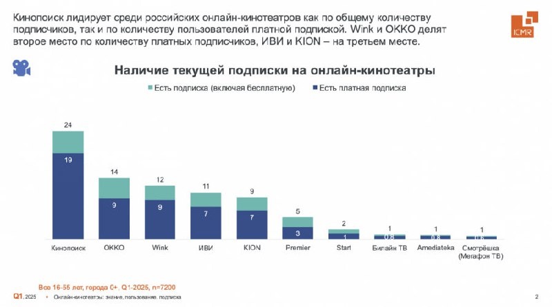 π Π ΠΎΡΡΠΈΠΉΡΠΊΠΈΠ΅ ΠΎΠ½Π»Π°ΠΉΠ½-ΠΊΠΈΠ½ΠΎΡΠ΅Π°ΡΡΡ Π½Π°ΡΠ°ΡΡΠΈΠ»ΠΈ ΡΠΈΡΠ»ΠΎ ΠΏΠΎΠ΄ΠΏΠΈΡΡΠΈΠΊΠΎΠ² Π ΠΏΠ΅ΡΠ²ΠΎΠΌ ΠΊΠ²Π°ΡΡΠ°Π»Π΅ 2025-Π³ΠΎ ΡΠ°ΠΊΠΈΠΌΠΈ ΡΠ΅ΡΠ²ΠΈΡΠ°ΠΌΠΈ ΠΏΠΎΠ»ΡΠ·ΠΎΠ²Π°Π»ΡΡ 41% ΡΠΎΡΡΠΈΡΠ½, ΡΠ°ΡΡΠΊΠ°Π·Π°Π»ΠΈ Π² ΠΈΡΡΠ»Π΅Π΄ΠΎΠ²Π°ΡΠ΅Π»ΡΡΠΊΠΎΠΉ ΠΊΠΎΠΌΠΏΠ°Π½ΠΈΠΈ GfK. βͺοΈ Β«ΠΠΈΠ½ΠΎΠΏΠΎΠΈΡΠΊΒ» ΠΏΡΠΎΠ΄ΠΎΠ»ΠΆΠ°Π΅Ρ Π·Π°Π½ΠΈΠΌΠ°ΡΡ ΠΏΠ΅ΡΠ²ΠΎΠ΅ ΠΌΠ΅ΡΡΠΎ ΡΡΠ΅Π΄ΠΈ ΠΎΠ½Π»Π°ΠΉΠ½-ΠΊΠΈΠ½ΠΎΡΠ΅Π°ΡΡΠΎΠ² ΠΊΠ°ΠΊ ΠΏΠΎ ΠΎΠ±ΡΠ΅ΠΌΡ ΠΊΠΎΠ»ΠΈΡΠ΅ΡΡΠ²Ρ ΠΏΠΎΠ΄ΠΏΠΈΡΡΠΈΠΊΠΎΠ², ΡΠ°ΠΊ ΠΈ ΠΏΠΎ ΠΊΠΎΠ»ΠΈΡΠ΅ΡΡΠ²Ρ ΠΏΠΎΠ»ΡΠ·ΠΎΠ²Π°ΡΠ΅Π»Π΅ΠΉ Ρ ΠΏΠ»Π°ΡΠ½ΠΎΠΉ ΠΏΠΎΠ΄ΠΏΠΈΡΠΊΠΎΠΉ. βͺοΈ ΠΡΠΎΡΠΎΠ΅ ΠΌΠ΅ΡΡΠΎ ΠΏΠΎ ΠΎΠ±ΡΠ΅ΠΌΡ ΡΠΈΡΠ»Ρ ΠΏΠΎΠ΄ΠΏΠΈΡΡΠΈΠΊΠΎΠ² Π·Π°Π½ΠΈΠΌΠ°Π΅Ρ Okko, ΠΊΠΎΡΠΎΡΡΠΉ Π²ΠΏΠ΅ΡΠ²ΡΠ΅ ΠΏΠΎ ΡΡΠΎΠΌΡ ΠΏΠΎΠΊΠ°Π·Π°ΡΠ΅Π»Ρ ΠΎΠ±ΠΎΡΠ΅Π» Wink, ΠΏΠΎΠ΄Π²ΠΈΠ½ΡΠ² Π΅Π³ΠΎ Π½Π° ΡΡΠ΅ΡΡΠ΅ ΠΌΠ΅ΡΡΠΎ. π ΠΠΎΠΆΠ°Π»ΡΠΉ, Π»ΡΡΡΠΈΠΉ ΡΠ΅Π»Π΅Π³ΡΠ°ΠΌ-ΠΊΠ°Π½Π°Π» ΠΎ ΠΌΠ°ΡΠΊΠ΅ΡΠΈΠ½Π³Π΅
