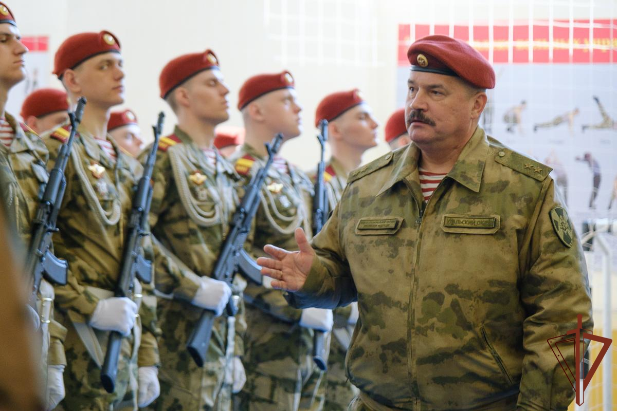 В Екатеринбурге в головном полку калиновского соединения по охране важных государственных объектов и специальных грузов врио командующего Уральским округом войск национальной гвардии генерал-лейтенант Дмитрий Черепанов проверил готовность парадного расчета к Параду Победы, который состоится 9 мая на главной площади столицы Урала.