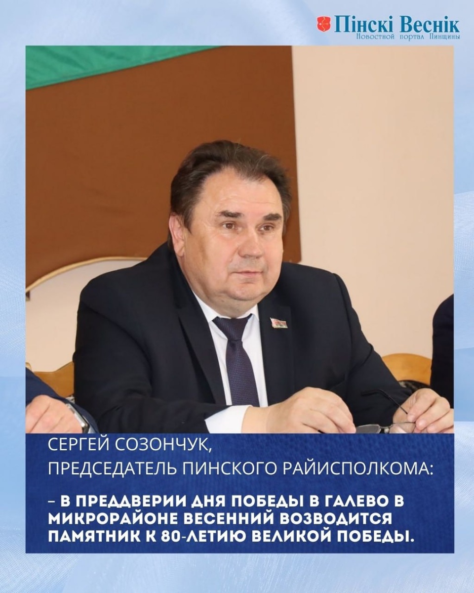 – В преддверии Дня Победы в Галево в микрорайоне Весенний возводится памятник к 80-летию Великой Победы. Строится он на пожертвования частных лиц, индивидуальных предпринимателей, фермерских хозяйств, предприятий. Работы по его возведению завершаются. Осталось только благоустройство территории. Это важный знак на въезде в город. Приглашаю всех на его открытие 8 мая.