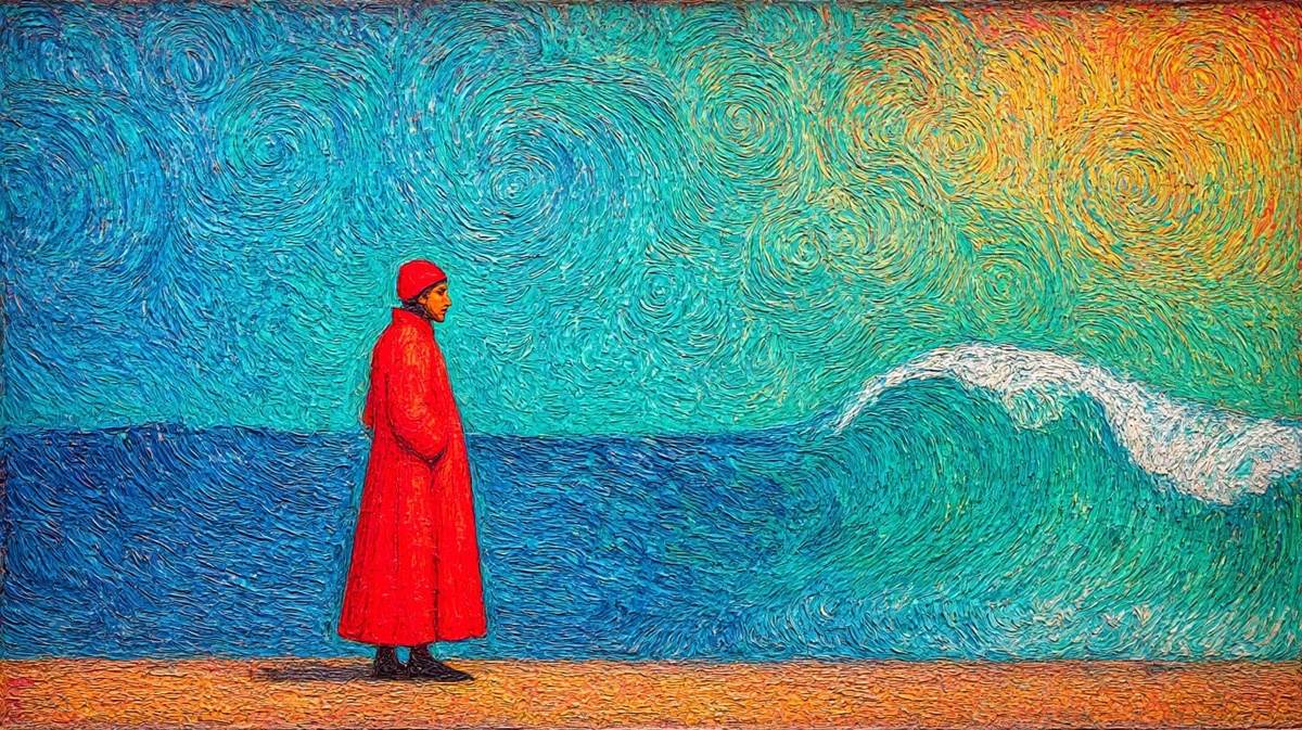 Создано на основе запроса: Giorgione's iconic painting, 'The Tempest', Reimagined with van Gogh's swirling, dynamic brushstrokes and vibrant colour palette. Consider his expressive use of color and movement to convey emotion and energy. --- Автоперевод: Знаменитая картина Джорджионе «The Tempest», переосмысленная с циркульными, динамичными мазками и яркой цветовой палитрой Ван Гога. Какое твое впечатление? 🤔 https://dzen.ru/id/65c0c65c86e4f837c27b24d7 #ИИ #AI #нейросеть #midjourney #art