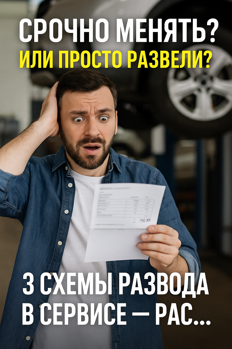 Ты просто заехал поменять масло… А через 10 минут тебе уже в уши заливают: “Срочно надо менять — до дома не доедешь!” Спокойно. Это не всегда правда. Я — мастер-консультант, расскажу, как это работает изнутри. Тебе показывают: – масляное пятно на моторе, – “почти стёртые” колодки, – запотевание на шрусе. И добавляют: “Надо срочно менять. Сейчас.” Зачем? Чтобы ты не думал, а сразу открыл кошелёк. Что на деле: – Пот на моторе — не течь. – Колодки ездят до 1,5 мм. – Пыльник шрус в трещинах — не приговор. Как проверить: Спроси: “А в миллиметрах износ какой?” Если начинают мямлить — не верь. Классика. Приехал менять рычаг — тебе говорят: “А у вас ещё и подшипник умер. Давайте сразу, пока разобрано.” Зачем? Чтобы не потерять шанс “добить чек”. Что на деле: Иногда реально совпадение. Но чаще — заранее прицелились на “допник”. Что делать: – Попроси фото детали. – Скажи: “Соберите, я подумаю.” Если начинают давить — уже тревожный звоночек. Фраза с весом: “Надо менять — по регламенту же.” Част