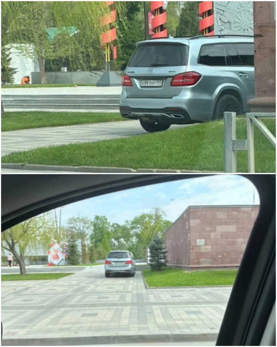 На улице Северной водитель Mercedes припарковался на тротуаре возле Вечного огня.