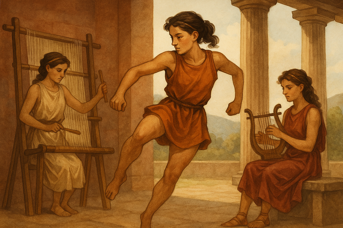 Вот представьте себе Спарту. Суровую, сдержанную, воинственную. Мужчины в ней с юности жили в казармах, учили искусству войны, закалялись и готовились защищать родину. Но что мы знаем о спартанских девушках? Не так уж и много, правда? Между тем их жизнь была не менее интересной и полна удивительных обычаев, которые сильно отличались от остального Элладского мира. Да, спартанки умели ткать, прясть и выполнять домашнюю работу — как и их сверстницы в других полисах. Но вот что действительно выделяло девочек Лакедемона — это образование и физическая подготовка. Они пели, танцевали и соревновались в хоровом искусстве, выступая на праздниках и участвуя в культовых ритуалах. Их учили стихи, они впитывали дух Спарты через поэзию и ритм. А ещё — бегали, метали копья, боролись и соревновались наравне с мальчиками. Законодатель Ликург считал, что здоровая и крепкая мать — залог сильных потомков. Так в воспитании спартанок спорт стал не роскошью, а необходимостью. Выбор мужа? Не их прерогатива. Вс